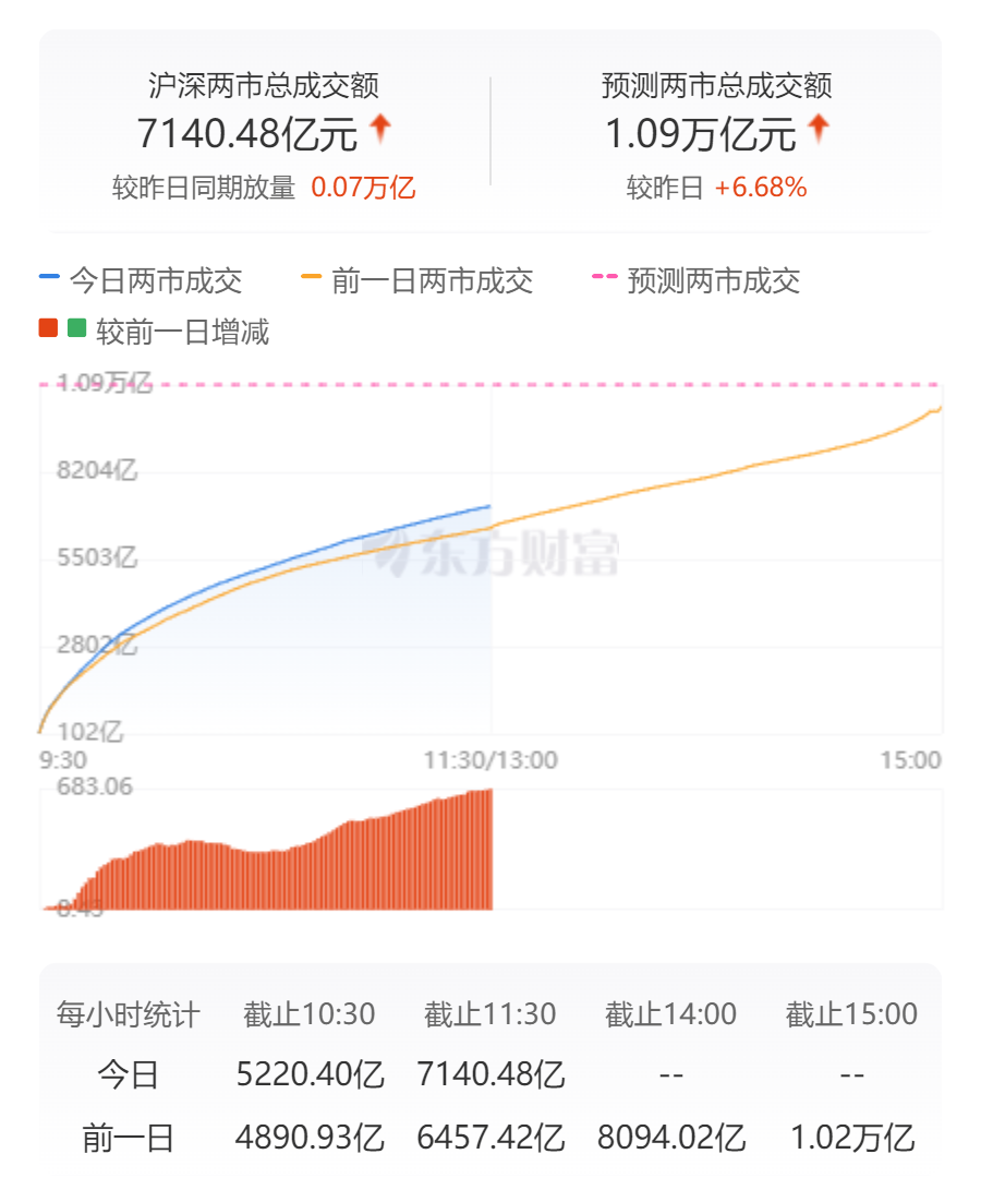截至午间收盘,沪指下跌0.08%,报3283.97点;深成指上涨0.73%,报9921.88点;创业板指上涨1.01%,报1951.43点;科创50指数上涨0.96%,报1013.51点;北证50指数上涨3.19%,报1334.07点。全市场上涨个股有3883家,下跌个股有1340家,72只股涨停。两市半日合计成交7140亿。